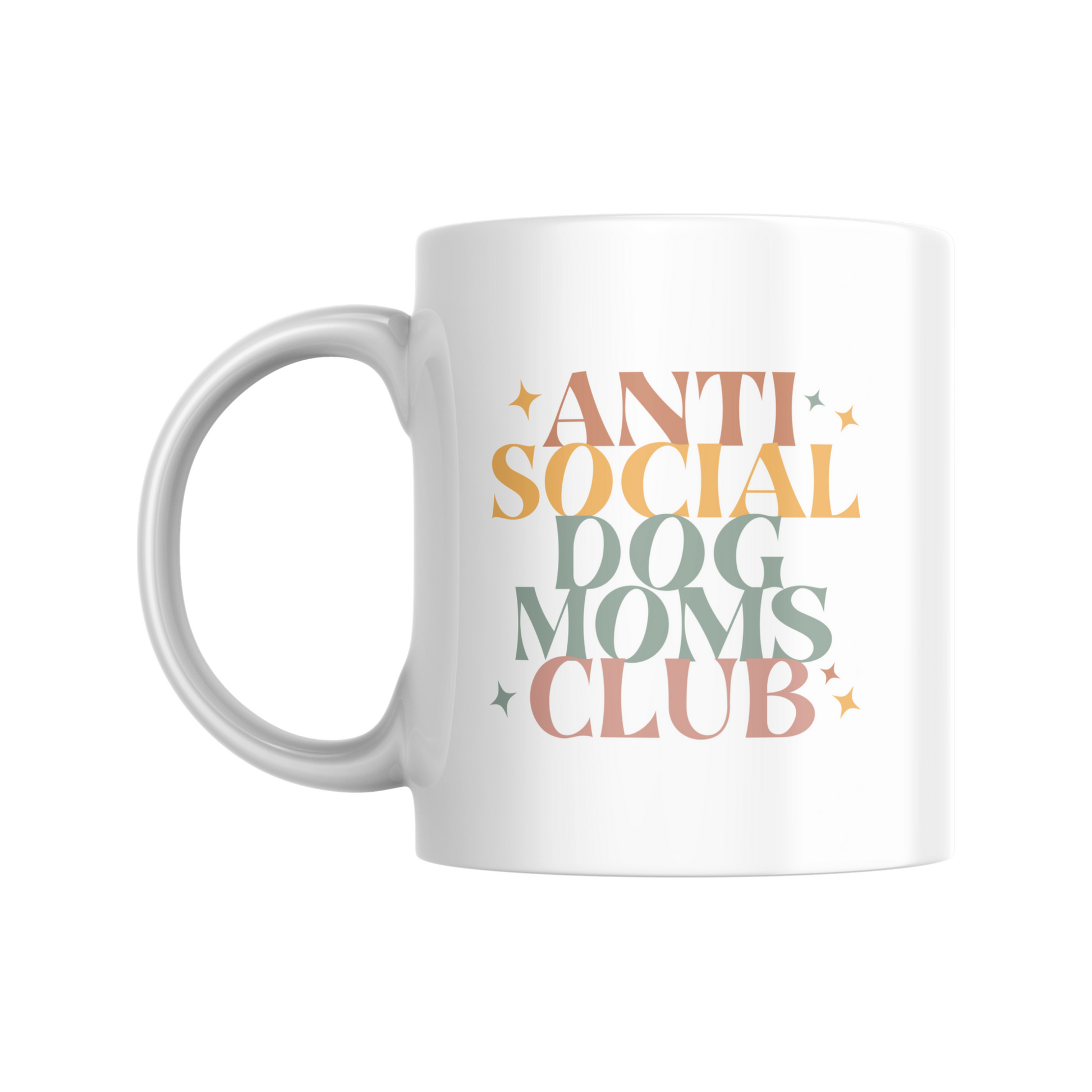 Anti Social Dog Moms Club 11oz White Ceramic Mug | Multi Colored Inside and Handle Mugs