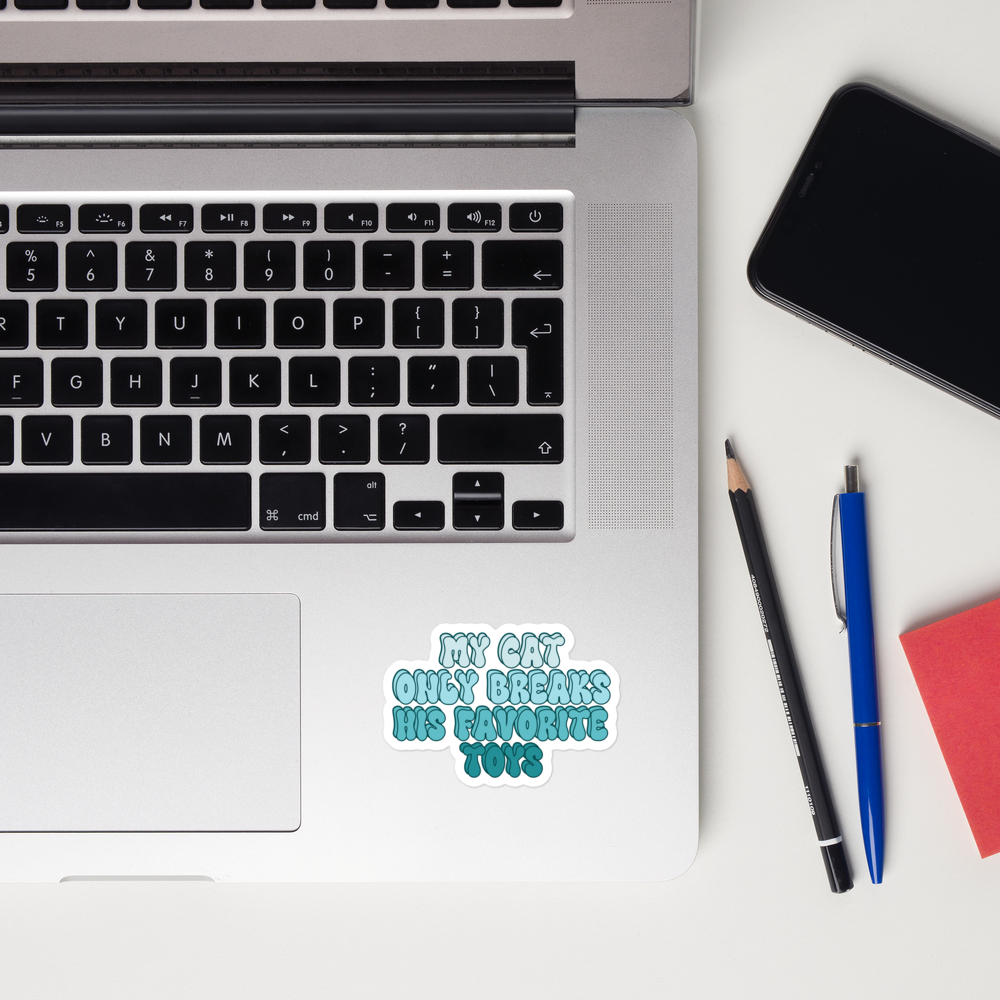 Introducing our purr-fectly delightful "My Cat Only Breaks His Favorite Toys" bubble-free blue stickers, designed for the true connoisseurs of kitty chaos.