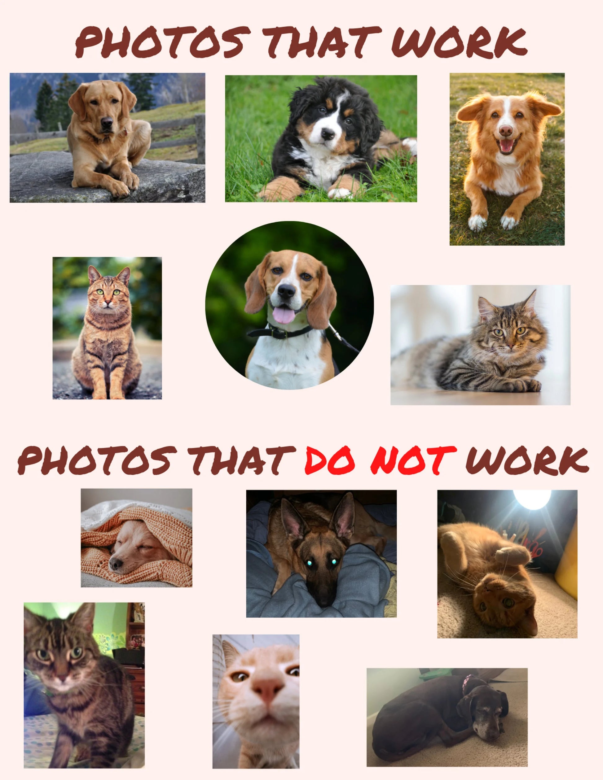 -Send a message  with a photo of your pet. Add your pets name and be sure to double check your spelling. If you do not wish to have a name, type No Name.