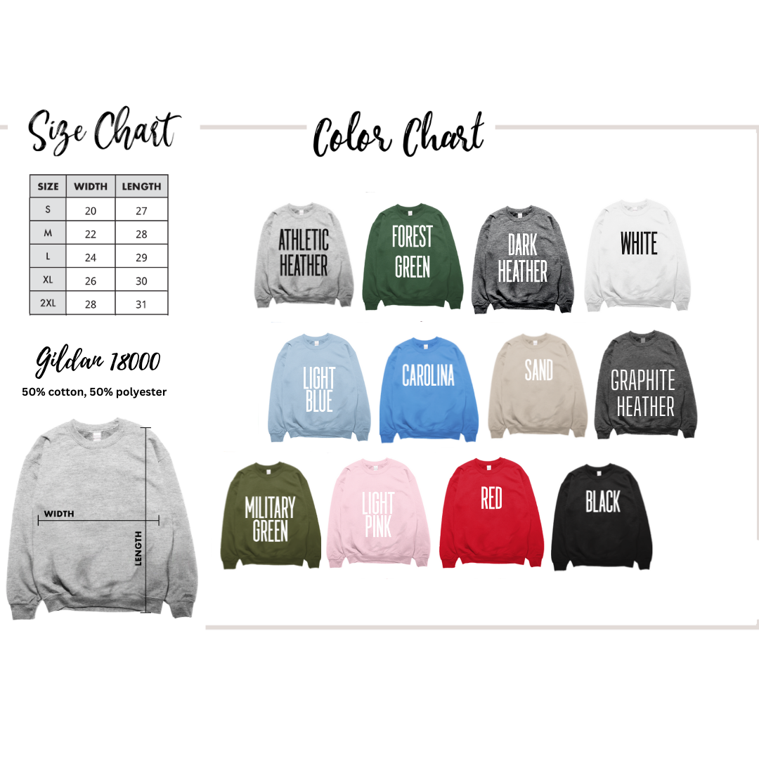 Black and Black designs can be changed to White Font*** please message me PRIOR before making a purchase so I can accommodate :) All sweatshirts are unisex fit. Please refer to the size chart provided in the listing photos for more details. -Size up 1-2 sizes for an oversized look -If you do not see your size or color option, please message me first to help make any accommodations.