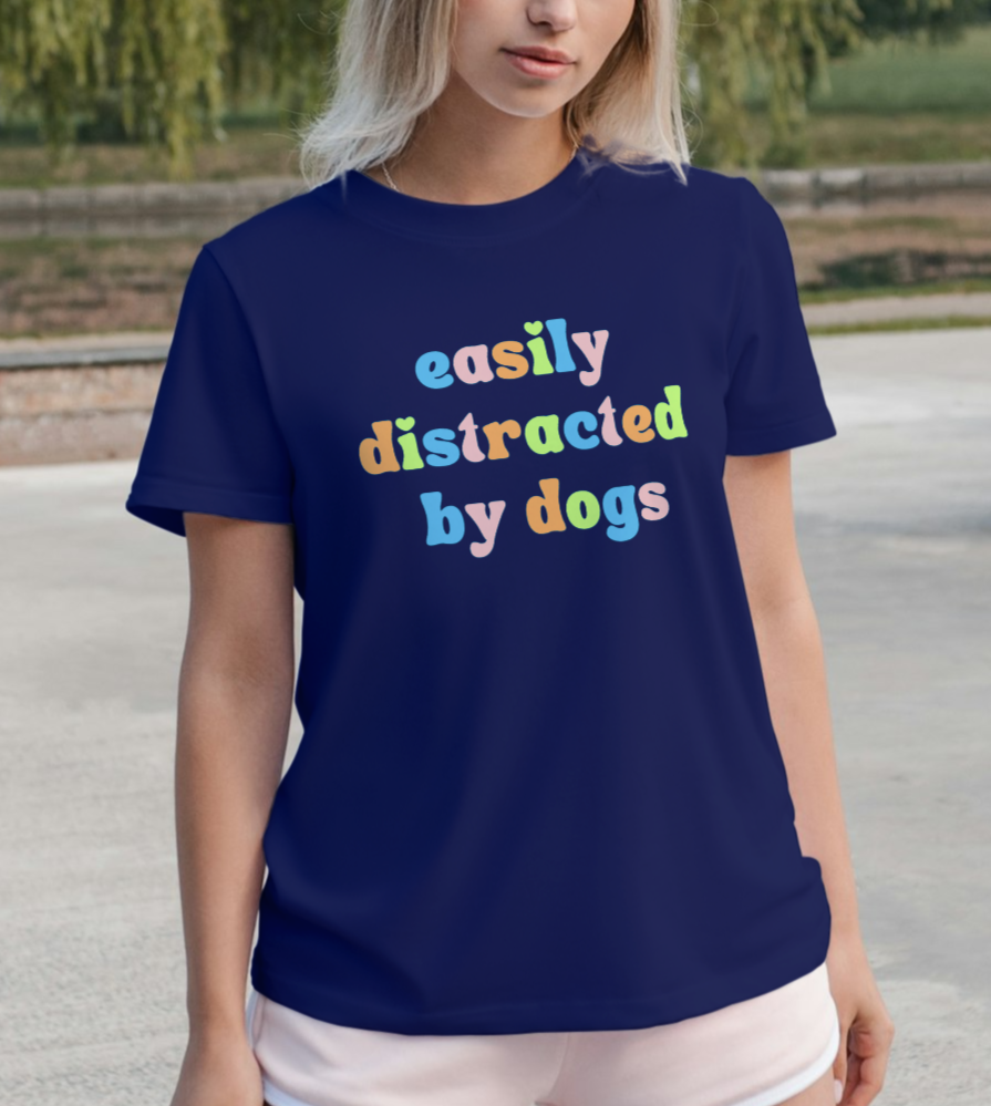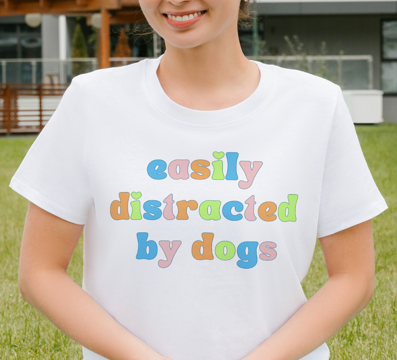 🌈 Introducing our "Easily Distracted by Dogs" t-shirt, because let's face it, who isn't?