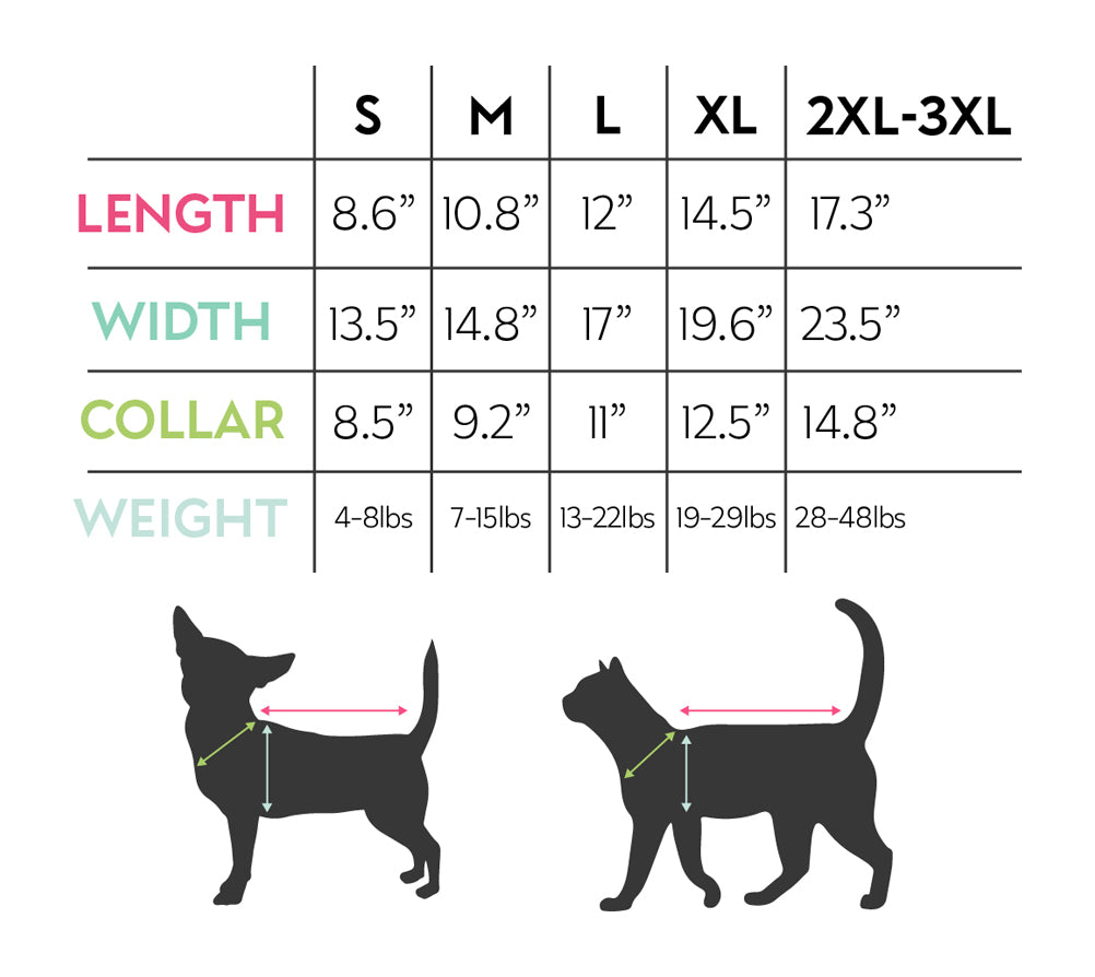 Size: S (4-8 lbs.), M (7-15 lbs.), L (13-22 lbs.), XL (19-29 lbs.), 2XL-3XL (28-48 lbs.) Recommend for SMALL breeds.