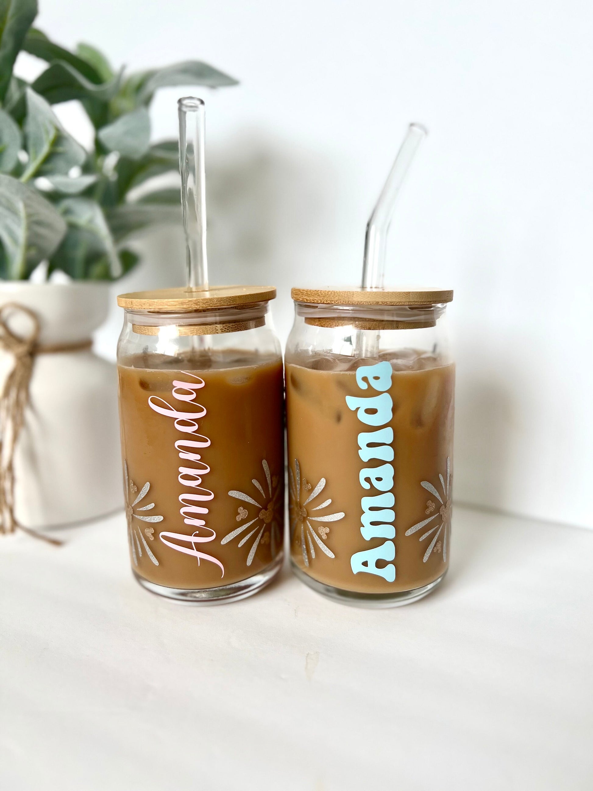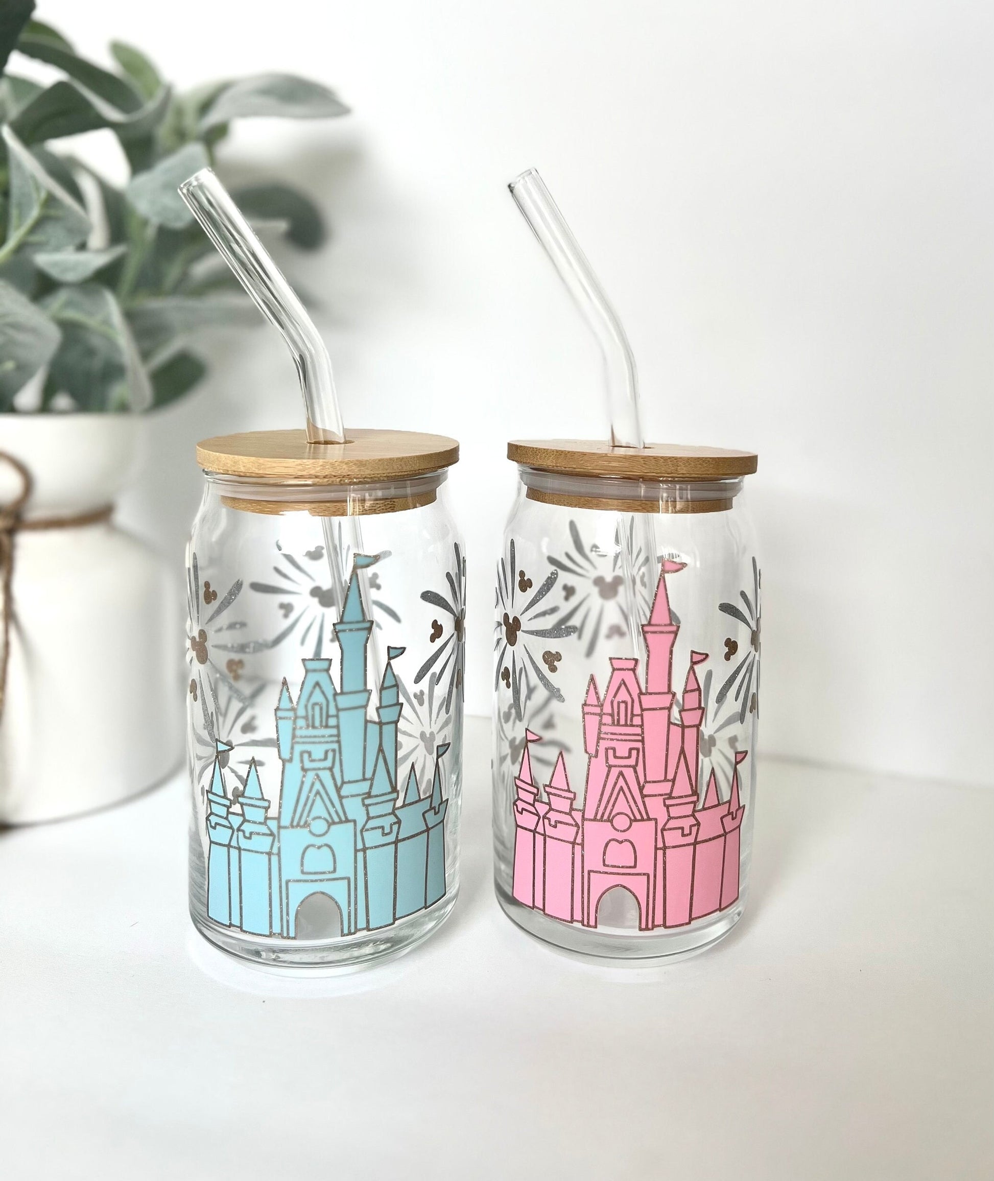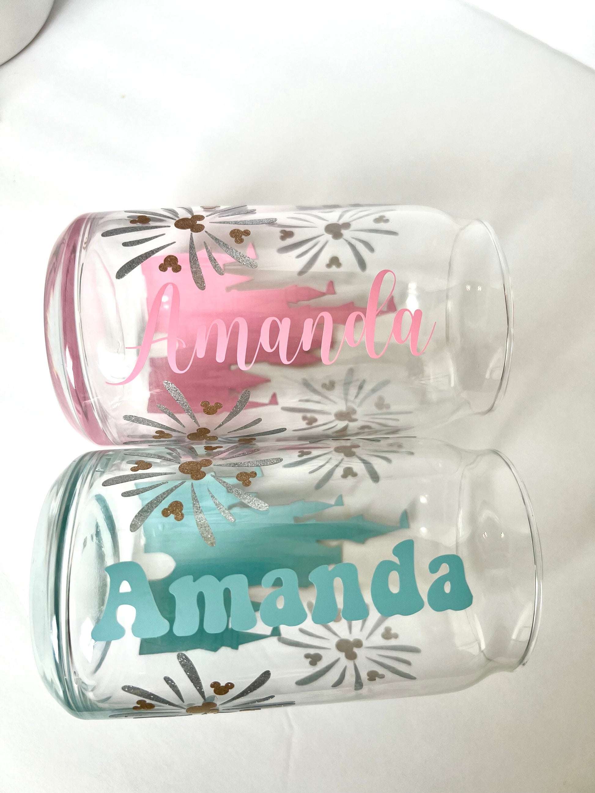 ✨ Step into the magic with our enchanting custom glass can! 🏰 Personalized with your name and adorned with iconic Disney castle and fireworks made of permanent vinyl, this isn't just any drinkware—it's a whimsical tribute to the wonder of Disney.