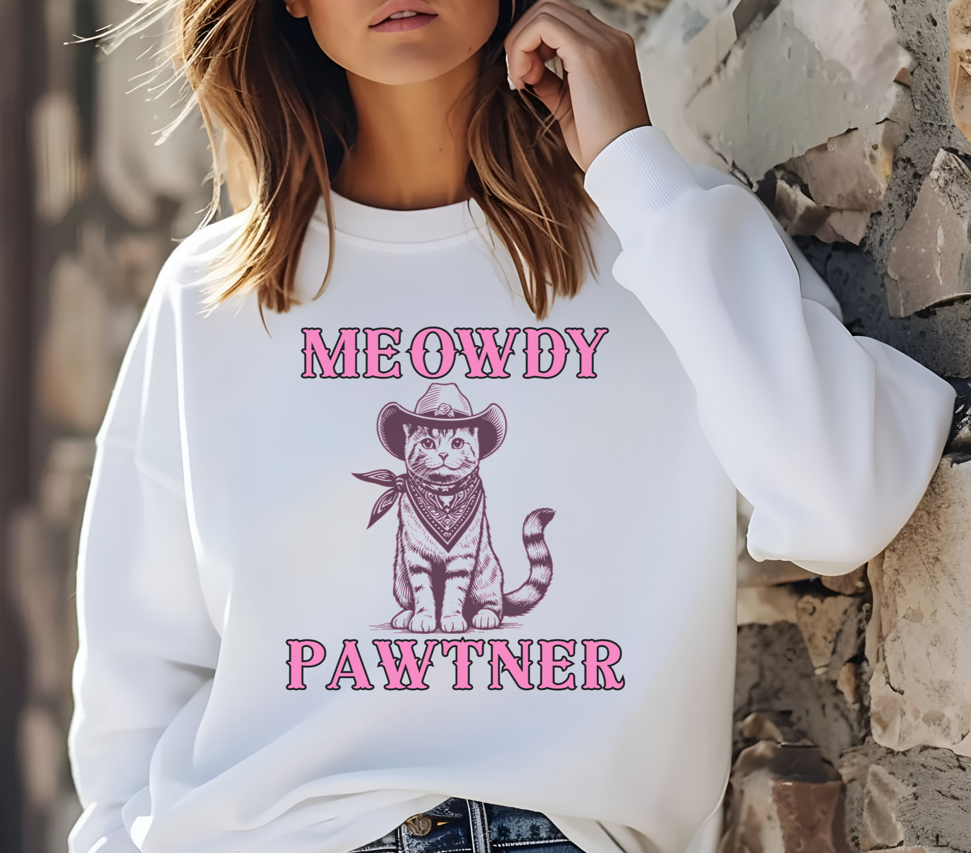 Get your very own Meowdy Pawtner Cat Cowboy Crew Neck