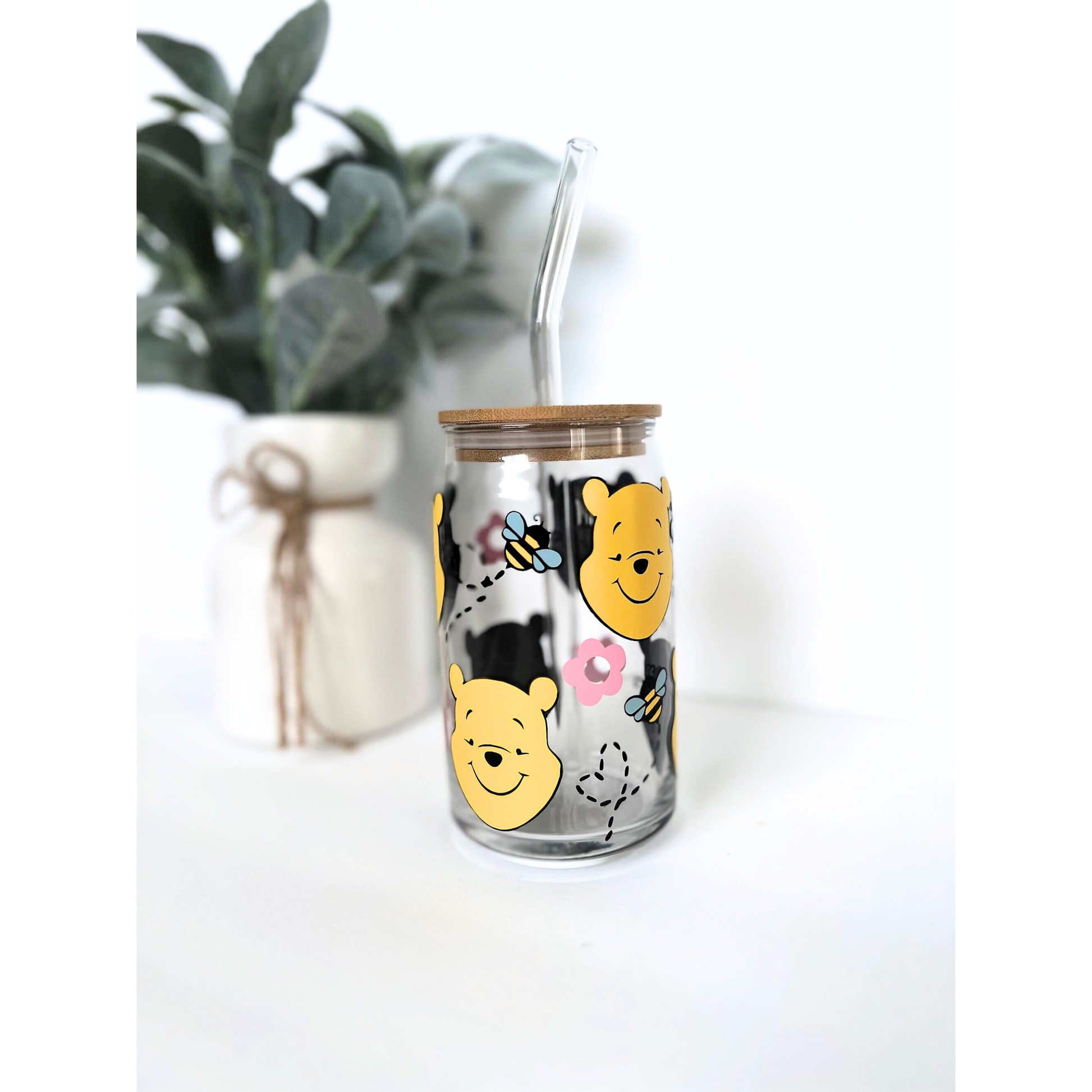 🍯 Embrace the whimsy with our delightful glass can featuring everyone's favorite bear, Winnie the Pooh, made of permanent vinyl! 🐻 Complete with a bamboo lid and glass straw, this isn't just any drinkware—it's a honey-sweet tribute to childhood nostalgia.
